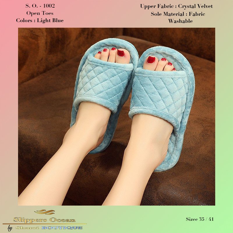 Indulge in cozy comfort with our Open Toes slippers. Crafted with luxurious Crystal Velvet upper fabric, these slippers offer unparalleled softness. The Fabric sole provides a gentle cushion with each step. Plus, they’re washable, ensuring lasting freshness and style. Treat your feet to pure relaxation and style today!